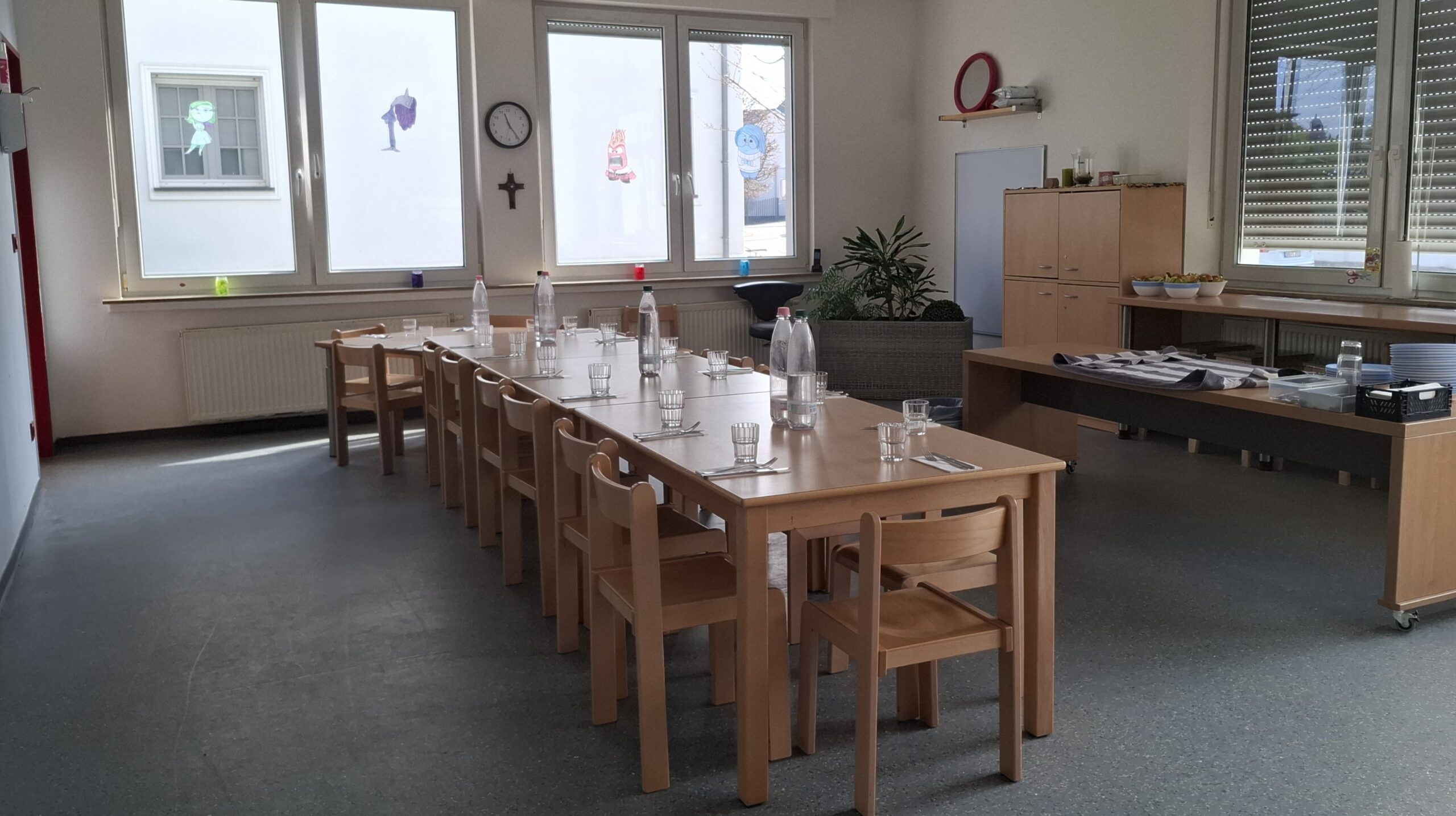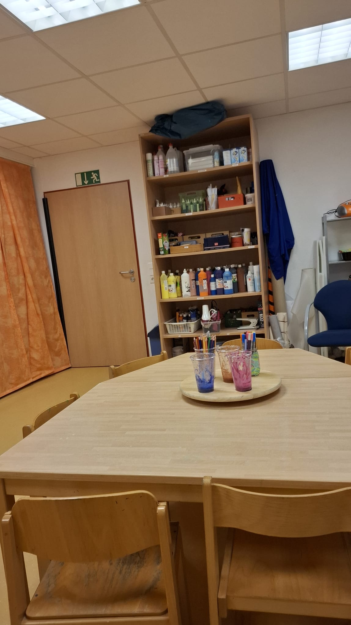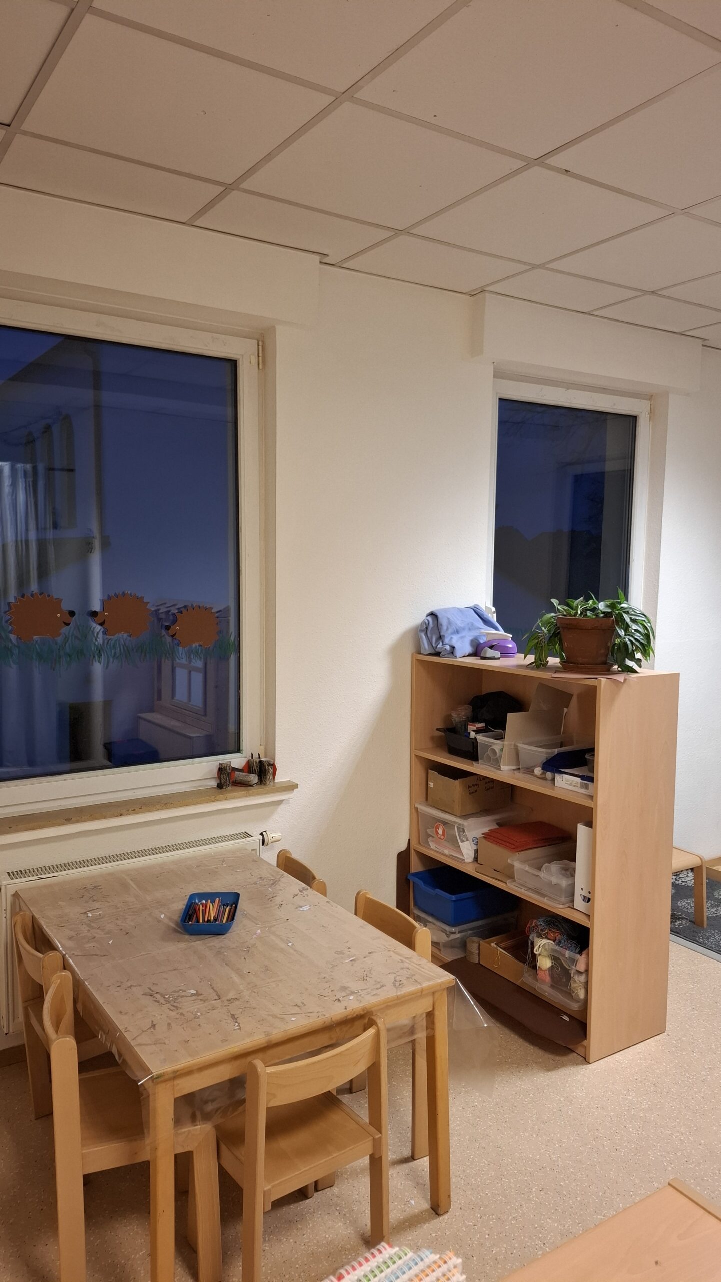Der Personalraum dient zur Vorbereitung und Besprechung des Personals und wird für Elterngespräche und Kooperationspartner genutzt.