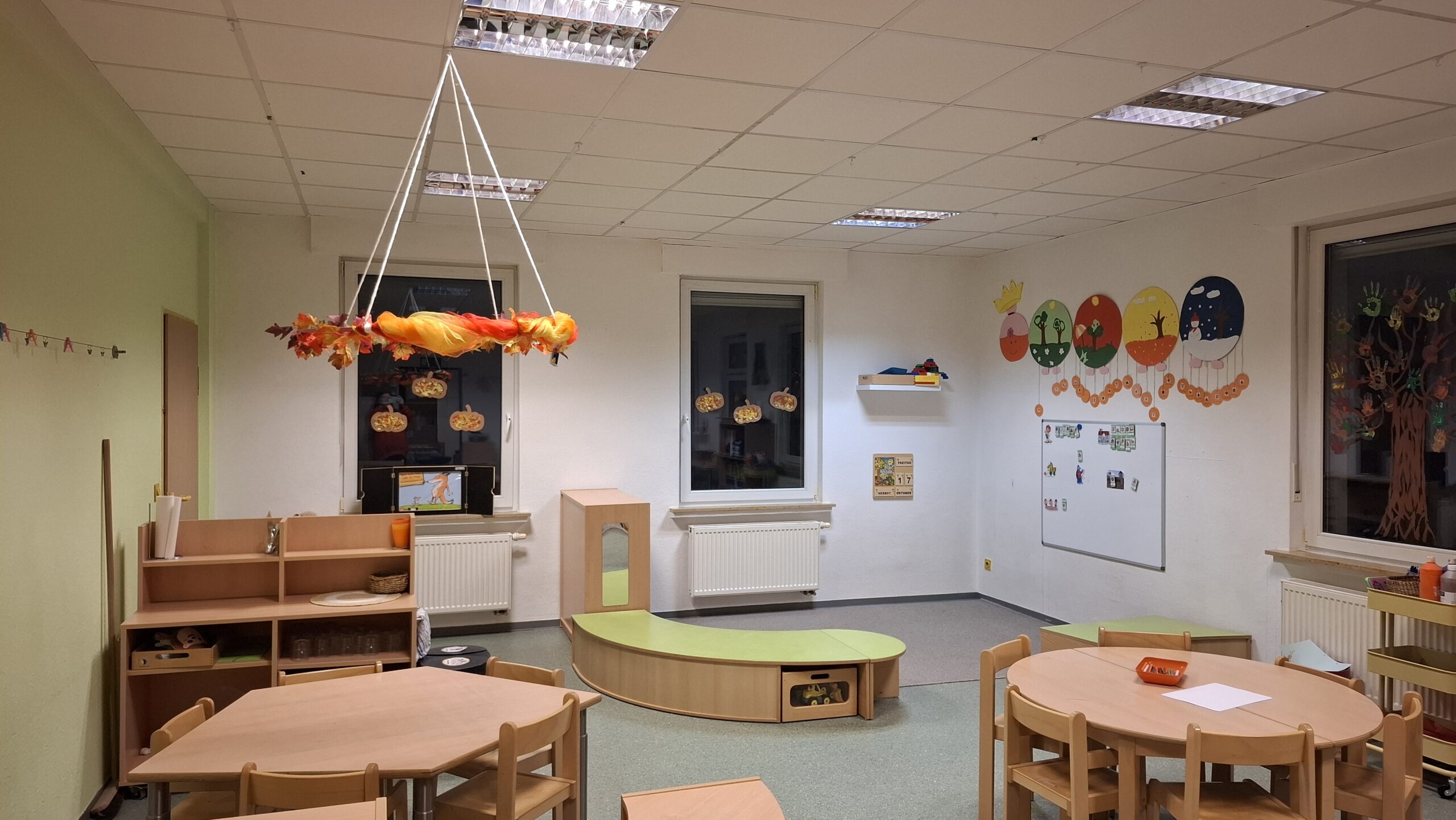 In dieser Gruppe werden zehn Kinder mit dem Betreuungsumfang von 25 Wochenstunden betreut.